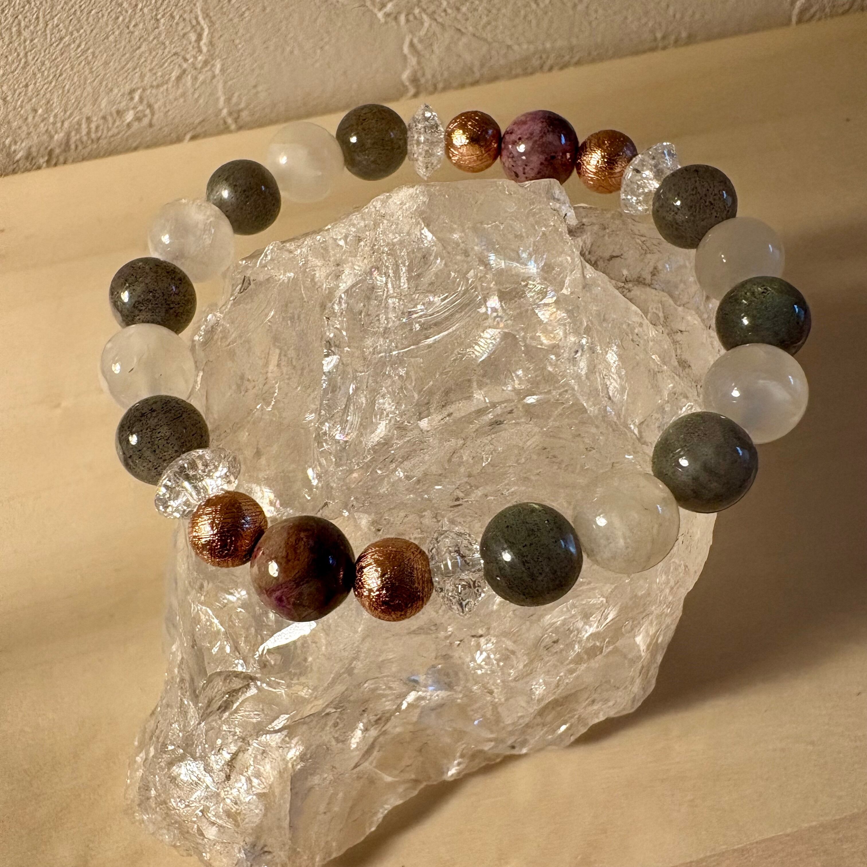 MIXラブラドブレスレットNo.1は、持つ人に癒しをもたらし、日常の中でポジティブな影響を与えます。このブレスレットは、忙しい日常の中で心の安定をサポートするアイテムとして、大変お勧めです。